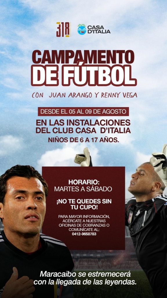 Del 5 al 9 de agosto de 2025, Casa D’Italia se prepara para ser sede del campamento de fútbol más esperado del año, de la mano de las leyendas Juan Arango y Renny Vega.