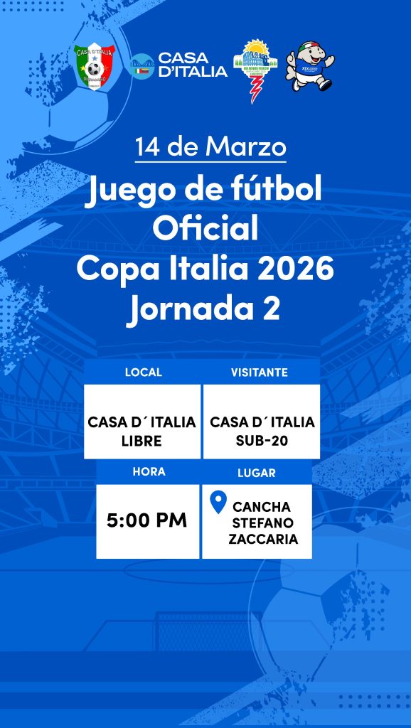 Estimado socio ⚽ ¡Derby Italiano!🇮🇹🇻🇪 Mañana, sábado 14 de marzo nos reencontramos en nuestra cancha para apoyar a nuestros equipos en la Jornada 2 de la Copa Italia 2026. No se pierdan este gran encuentro donde se enfrentarán las categorías LIBRE y SUB-20. 📍 Lugar: Cancha Stefano Zaccaria. 🕔 Hora: 5:00 PM. 📅 Fecha: Sábado …