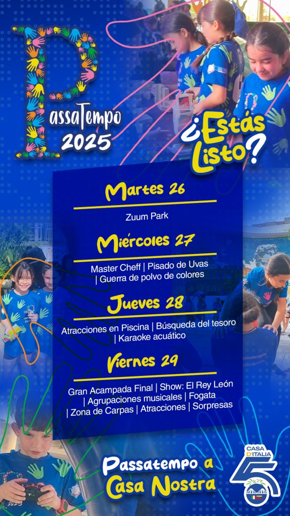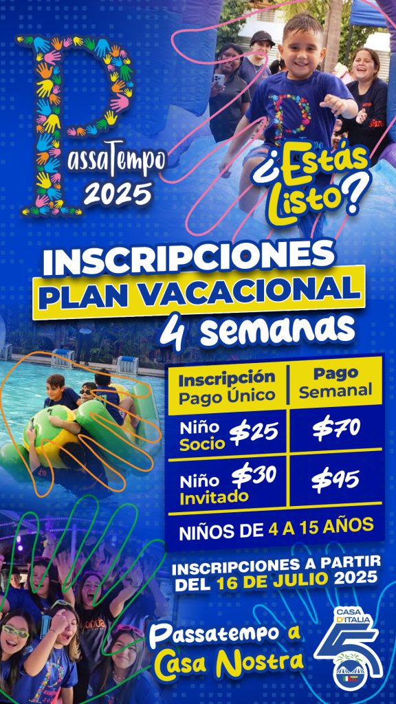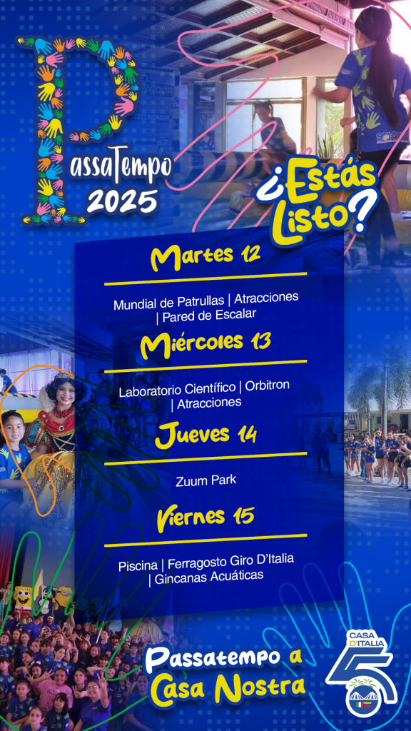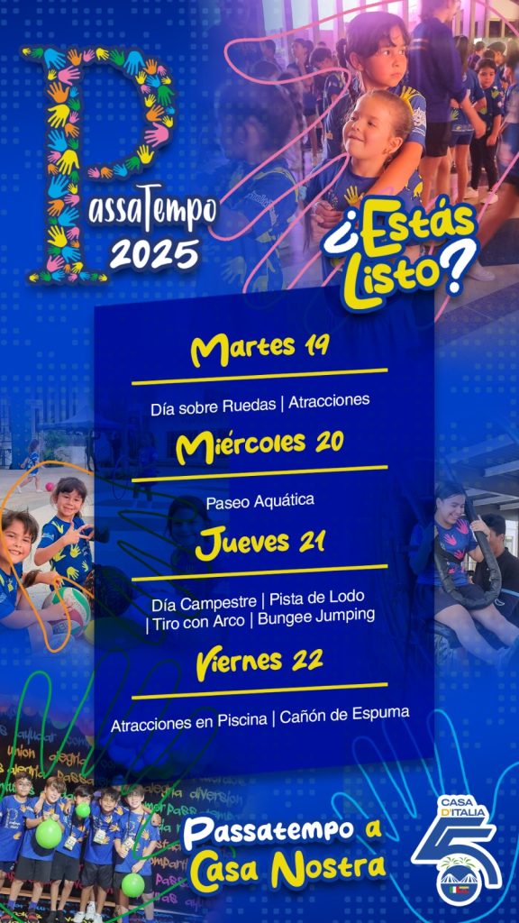 Estimado socio. Hoy martes 26 de agosto, inicia nuestra cuarta y última semana del Plan Vacacional Passatempo 2025, tendremos: Martes 26 de agosto.✅ Zuum Park. Miércoles 27 de agosto.✅ MasterChef. 👨🍳✅ Pisado de uvas. 🍇✅ Guerra de polvo de colores. Jueves 28 de agosto.✅ Atracciones en piscina. 🏊✅ Búsqueda del tesoro.✅ Karaoke acuático. 🎤 Viernes …
