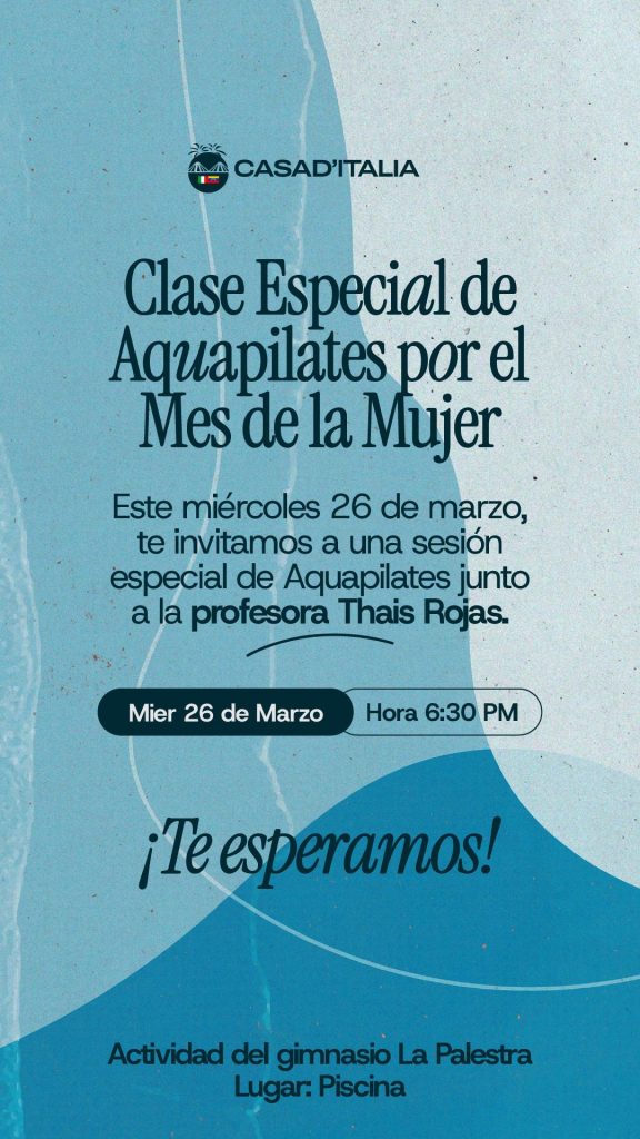 La Palestra te invita este Miércoles 26 de marzo a una clase especial de Aquapilates por el mes de la mujer, de la mano de la profesora Thais Rojas.