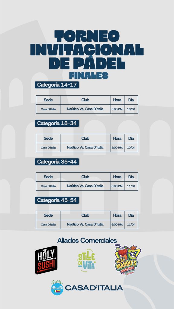 Acompáñanos a disfrutar de las Finales del Torneo Invitacional de Pádel, en el mejor ambiente deportivo y familiar.