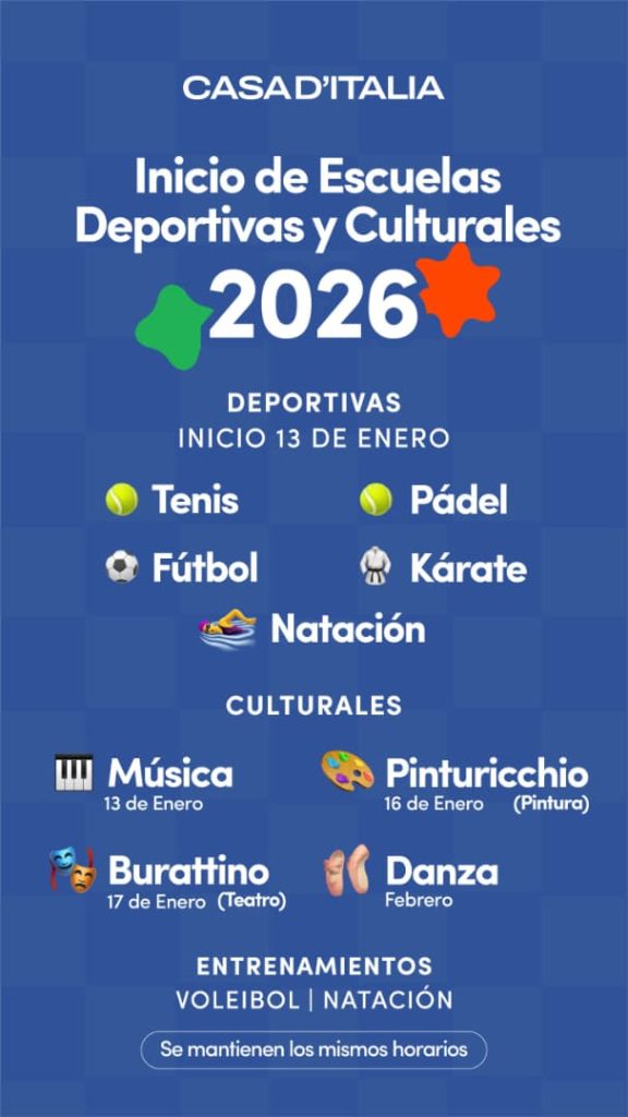 Les informamos del inicio de nuestras Escuelas Deportivas y Culturales 2026. 🇮🇹✨