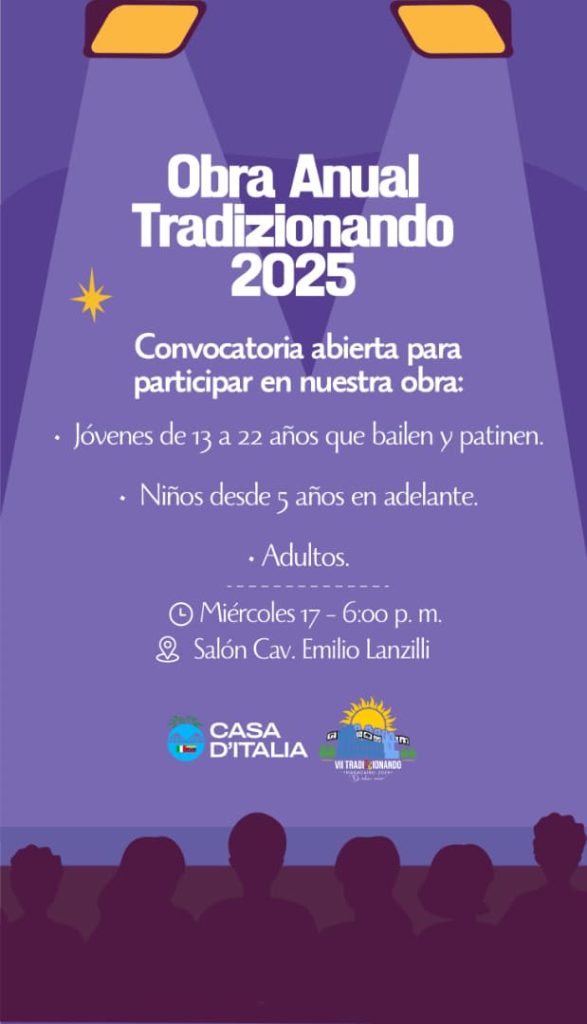 Te invitamos este Miércoles 17 de septiembre a una convocatoria abierta para participar en nuestra obra de teatro anual para el Tradizionando 2025: